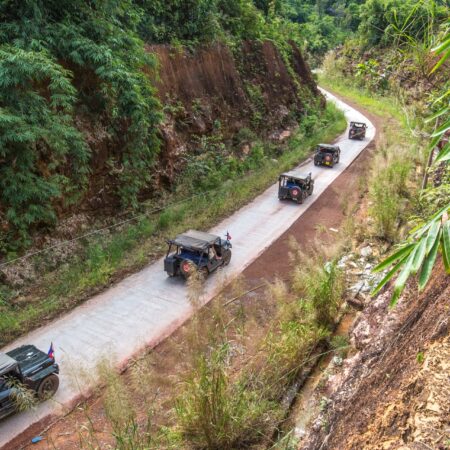 Remember where the magic began? The legendary Cardamom Mountains! Back in 2013, pioneering a route through this incredible region felt almost impossible. Fast forward to today, and a magnificent new road carves its way through the mountains, offering the most jaw-dropping panoramic views! We'll see Cambodia's highest bridge! But hold on, the adventure doesn't stop there! We've unearthed even more thrilling off-road trails for our trusty jeeps! Get ready to journey deep into the jungle from Chiphat to Areng, and imagine waking up to breathtaking vistas overlooking the Kirirom Valley! Indulge in pure tranquility and luxury at Canvas & Orchids, a hidden gem accessible only by boat. Of course, no Cambodian adventure is complete without witnessing the awe-inspiring Angkor Wat, the world's largest temple complex! But we'll also venture off the beaten path to discover secret jungle temples and unlock the secrets of the world's finest pepper when we arrive in Kampot. And believe us, there are still so many more dazzling jewels waiting to be discovered on this epic jeep adventure!