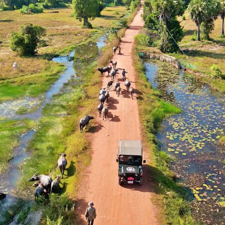 Prepare to experience the real Cambodia in a way you never imagined! You'll be navigating charming villages, dusty dirt roads, lush forests, and untouched territories far from the typical tourist trails, all from the driver's seat of a classic vintage jeep!