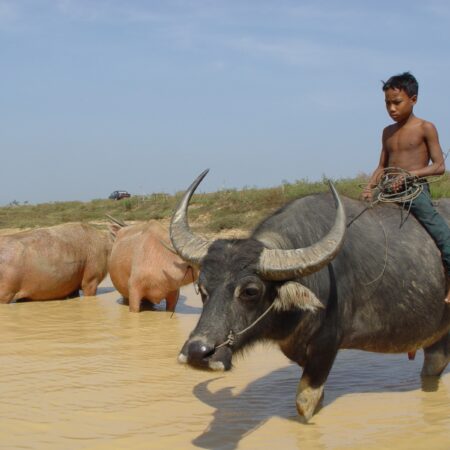 Battambang Naar Veal VengZou ze thuis kunnen zijn?Bereid je voor op een dag vol avontuur! Vandaag staat een gevarieerde rit op het programma, met asfaltwegen, zandpaden en misschien zelfs modderige wegen als het geregend heeft. We rijden door prachtige landschappen en heuvels met uitgestrekte plantages van bananen, durians en mango's.