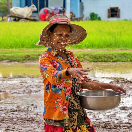Vanavond verblijf je in Farmhouse Smiling Gecko. Gelegen op het platteland, ongeveer 65 km ten noorden van Phnom Penh, is Farmhouse Smiling Gecko omgeven door rijstvelden en glooiende heuvels. Ons boutique bungalow resort is een trainingshotel en maakt deel uit van de holistische sociale organisatie Smiling Gecko. Het resort ligt in het hart van het landbouwgebied van het project.